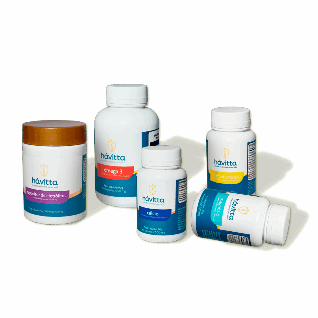 Os nossos suplementos são indispensáveis para a eficácia e a segurança em suas prescrições! A linha completa da Hávitta oferece: Magnésio, Cálcio, Ômega 3, Multivitamínico e Repositor de Eletrólitos, Sódio e Potássio.